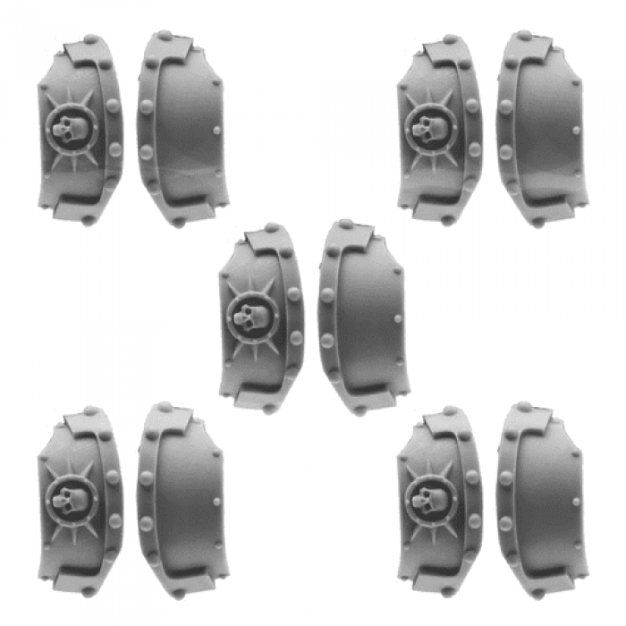 Warhammer 40K Forgeworld Cataphractii Terminator Shoulder Pads - Death Guard - First issued to the Legiones Astartes during the Great Crusade, Cataphractii terminator armour featured slab-like Ceramite pauldrons housing additional shield generators, exchanging speed for formidable defences and offering greater protection than other designs. This set is made up of ten resin shoulder pads featuring Death Guard Legion iconography. It includes five left and five right shoulder pads, and will fit a unit of five resin or plastic Cataphractii pattern Terminators.