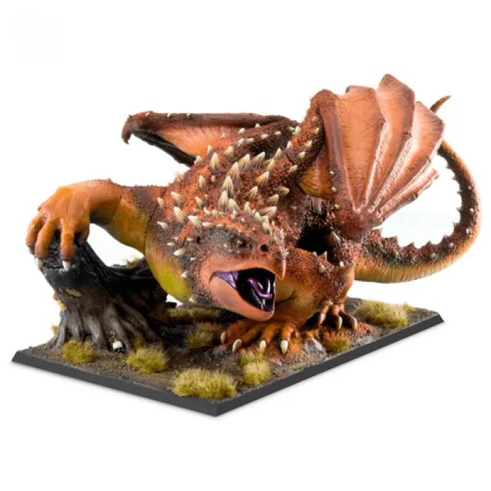 Forge World :Warhammer Age of Sigmar Magma Dragon - Primordial and vicious examples of their kind, Magma Dragons are malignant and reclusive; squat and heavily-armoured monsters whose bodies radiate foul heat. They dwell in the volcanic ranges of the Dark Lands and in the smouldering peaks of the Blackspine Mountains, having long become one with their flaming environment. Their favoured prey is great beasts such as Manticore or Chimera, but fortunately for the Old World the Magma Dragons only venture forth to slay and destroy when the great storms of magic rage or when they arrogantly wish to avenge some perceived slight. This incredibly detailed multi-part resin model is an impressive 7.5" (190 mm) long from claw to tail, and makes a fantastic centrepiece for any Warhammer army. This product includes one citadel 160mm round base.