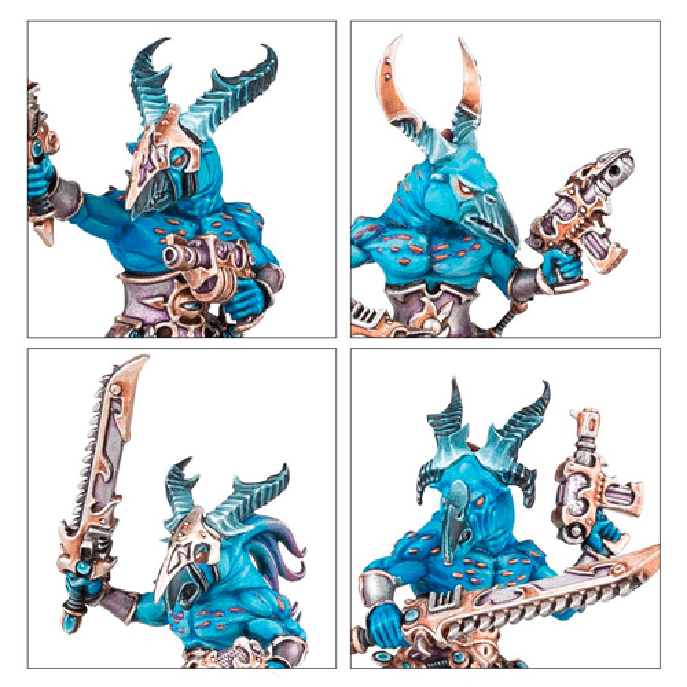 Warhammer Age of Sigmar Tzeentch Tzaangors - Tzaangors are bright of colouration and sharp of intellect. Their beaks clack as they chant blasphemous refrains in their dark tongues, gimlet eyes glowing in their aquiline skulls. They look to transcend their existences by seeking out the most powerful artefacts and priceless relics in serving sorcerous masters, they may earn the chance to elevate themselves. However, a cruel streak resides within the soul of every Tzaangor, and their artistic pretensions are often set aside in favour of sheer, shocking brutality. This multi-part resin kit contains all the components necessary to assemble 10 Tzaangors, armed with either 2 close combat weapons or an autopistol and chainsword. One model can be assembled as a Twistbray, with his own head options. Supplied with 10 Citadel 32mm Round bases.