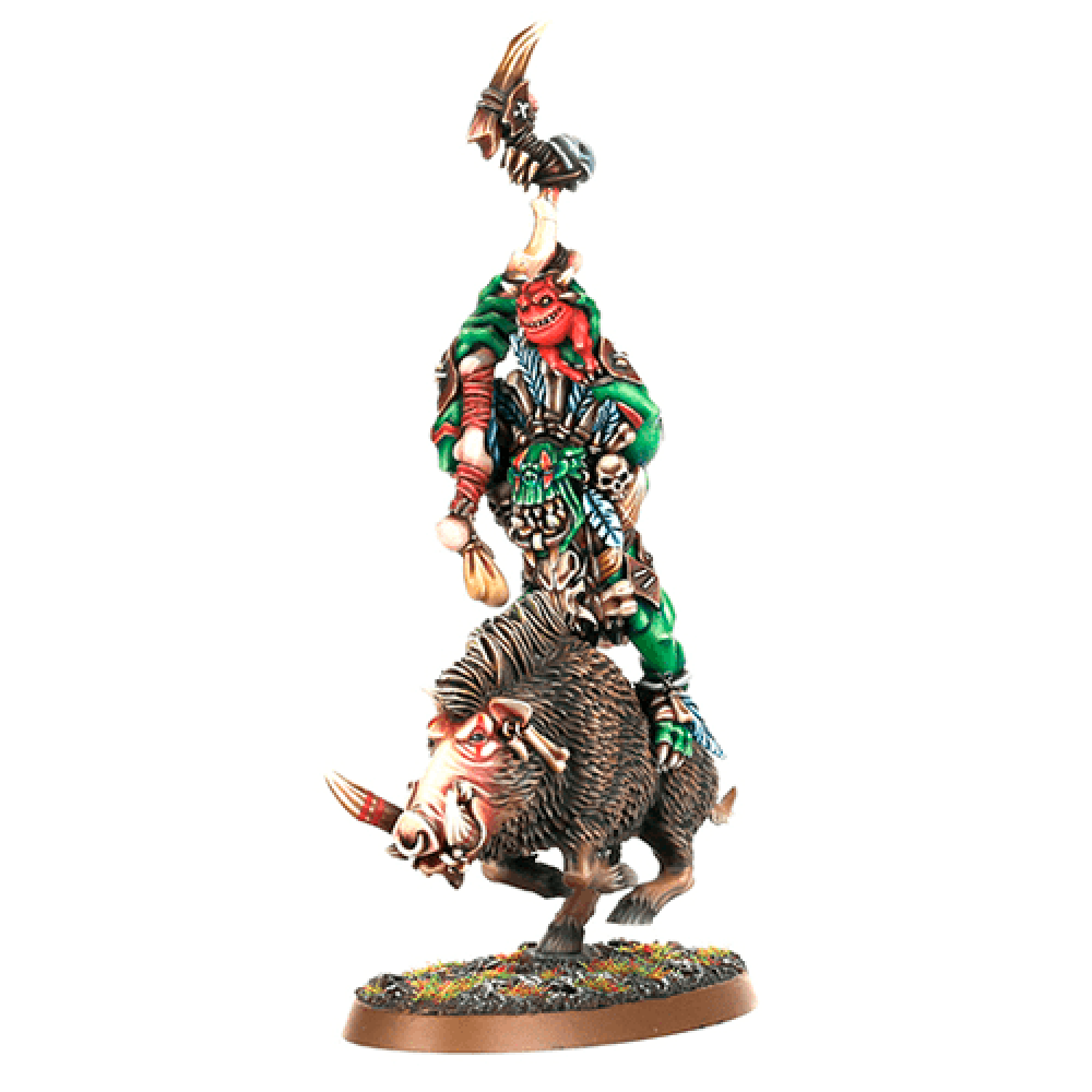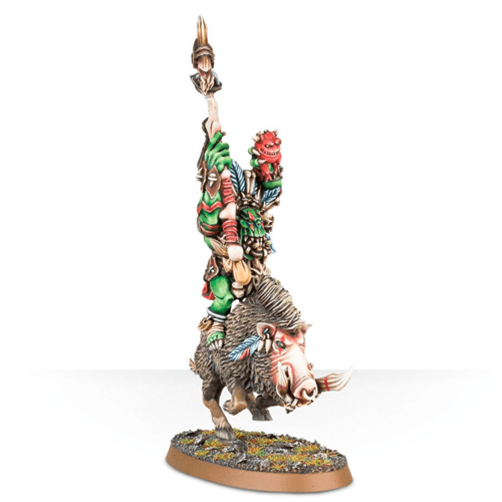 Warhammer Age of Sigmar Maniak Weirdnob - Even the most fierce intellect would eventually submit to the power of Gorkamorka. Maniak Weirdnobs never really had much in the way of strong will, so their descent into gibbering madness is particularly spectacular. These Bonesplitterz are sometimes created when a Wardokk kills a creature with an especially ferocious spirit, then fashion a bone stave to contain the creature’s soul. As the Maniak Weirdnob barrels into battle on his feisty warboar, the souls trapped in this stave causes incredible animalistic rage to consume the Maniaks around him – already quite cross, they are inspired to brutal acts of savagery by the Weirdnob’s strange magic. This kit contains all the parts necessary to assemble one Maniak Weirdnob, armed with a bonebeast staff and riding a ferocious warboar. Comes supplied with a Citadel 75mm Oval base.