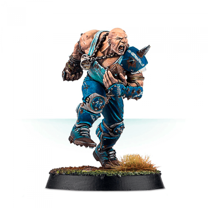 The Mighty Zug - Gifted with not only hefty bulk, strength and power but the ability to use them properly, The Mighty Zug is an expert at incapacitating opponents with a single swipe of his gigantic paw. A firm favourite with the fans despite (or because of) his brutish, ugly and stupid demeanour, he’s the Star Player of choice for Blood Bowl coaches who just want to get the job done. Nothing fancy – just a trail of smashed faces leading to victory. Add The Mighty Zug as a Star Player to any Human Blood Bowl team – not just the Reikland Reavers – with this resin kit. He can be built clutching the ball in his left arm, or modelled without; all the better for smashing faces in with a swipe of his enormous forearm. His rules, which mostly involve moving forward with the unstoppable grace of an angry continent, can be found as a Star Player card included with the Blood Bowl boxed game, and also in the supplement Death Zone Season 1. This resin kit comes in 7 components, with a 32mm round base.