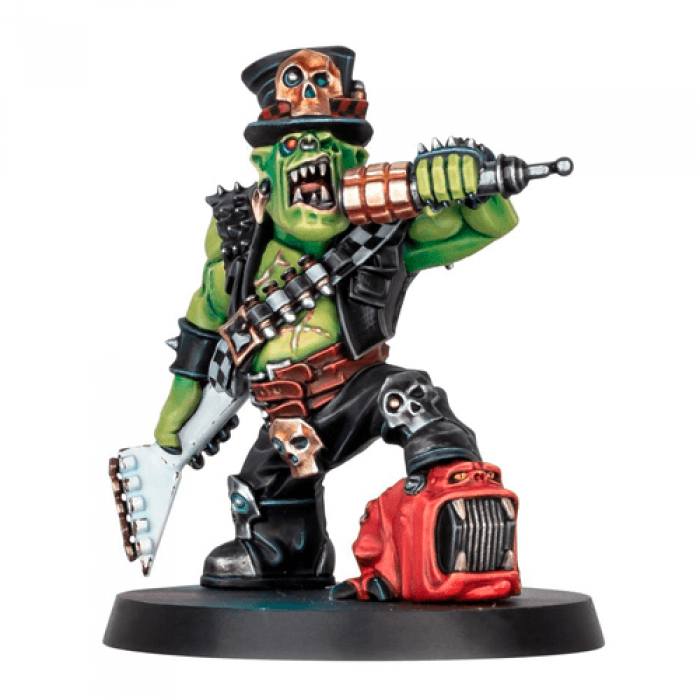 Goff Rocker - is the frontman of the most egregious and obnoxiously loud band in the history of the galaxy. While his Ork brethren bring the Waaagh! to the battlefield, he provides the soundtrack to a krumpin’. Inspired by the original Goff Rockers miniatures released in Warhammer's distant past, this miniature is designed to be reminiscent of – and intended to be – the frontman of the band. Standing as if mid-performance, with one foot atop a remote Squig-amp, he is equipped with a classically shaped rock guitar and Stikk Bomb microphone. This 10-piece resin kit contains the components required to build one Goff Rocker miniature.