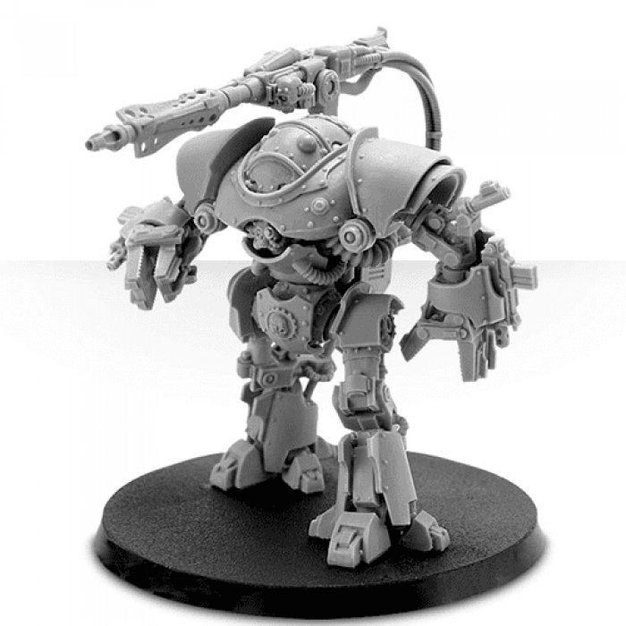 Warhammer 40K Forgeworld Mechanicum Castellax Battle-Automata with Darkfire Cannon - Three times the height of a man and formidably powerful, the Castellax class Battle-automata is a mainstay of the Legio Cybernetica and many Mechanicum armies. Capable of wielding an array of armaments, in addition to its powerful close combat weapons and boltguns, it can also be equipped with heavier and exotic ranged weaponry. In battle, the Castellax is animated by an aggressive machine spirit, its armoured endoskeleton making it near impervious during its assault. It is at its most deadly, however, when paired with the arcane and lethal darkfire cannon. Unleashing screaming beams of pure darkness, armour, flesh and stone boil away with their touch, and even the most heavily armoured vehicles can be torn apart by their hellish un-light. The Castellax Battle-automata with Darkfire Cannon can be taken as part of a Mechanicum or Legiones Astartes army in Horus Heresy games. Its rules can be found in both The Horus Heresy Book 2 – Massacre and The Horus Heresy Book 3 – Extermination. The Mechanicum Castellax Battle-automata with Darkfire Cannon is a complete multi-part resin kit and includes a choice of bolters or flamers as secondary weapons.