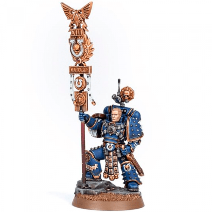 - When the Word Bearers launched their surprise attack on Calth, Remus Ventanus was central to the XIII Legion’s counter-offensive - rallying the shattered remnants of the Ultramarines to regain control of the Calth defence grid. Ventanus continued to fight even as his Primarch issued the order to evacuate the dying planet, leading his forces - and as many civilians as he could - into the subterranean arcologies under the surface. As the Horus Heresy rages on, the Saviour of Calth fights a vicious Underworld War against the followers of the Warmaster. This multipart resin kit builds one Remus Ventanus - a commander of the 1st Chapter of the Ultramarines Legion. This resolute hero proudly raises his Legion standard - an eye-catching staff mounted with the Imperial aquila, the sculpted numeral and armourials of the XIII Legion, trailing leather tassels, and the etched name of Macragge - with his other hand resting on his sheathed, gladius-style power sword, Phaethon. He is also equipped with a nuncio-vox unit mounted to his power back, and clad in artificer armour replete with Ultramarines details. The kit includes a choice of two heads - the bare face of Remus Ventanus, or a crested Praetorian helm. This kit comprises 15 resin components, and is supplied with a Citadel 32mm Round Base.
