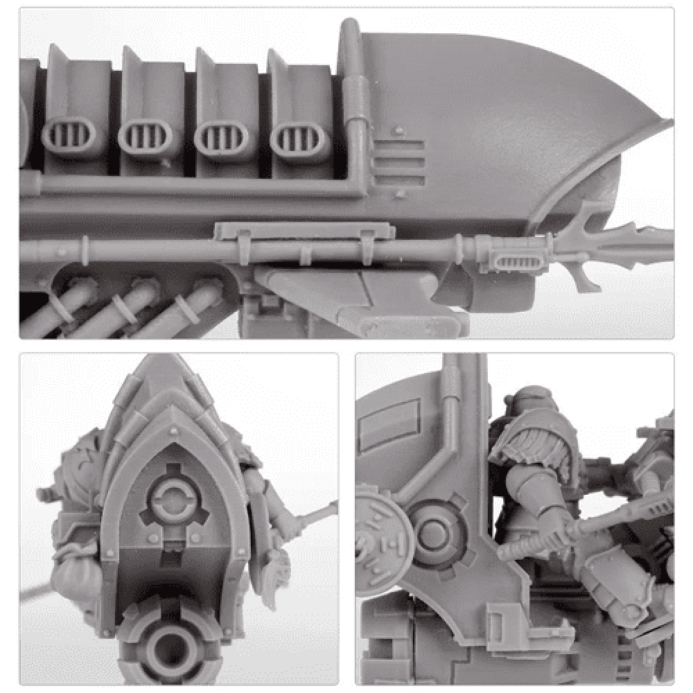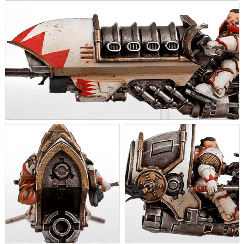 - Among the most prestigious of the White Scars main combat units are their heavy assault jetbike squads – the Golden Keshig. Led by their champion, these superlatively skilled riders serve as linebreakers and assault units par excellence. Sleek, fast and deadly, the Shamshir Jetbike perfectly encapsulates the White Scars' way of war. Their swiftness and mobility let you dictate where engagements take place, allowing you to pinpoint enemy targets and ruthlessly destroy them. The jetbike is armed with a deadly scatterbolt launcher while its rider wields a thunder hammer and has a kontos power lance stowed on the side of his bike. This highly detailed multipart resin kit builds one White Scars Legion Golden Keshig Champion mounted on a Shamshir jetbike. It is supplied with a 60mm Citadel flying base and a flying stem. Rules for using this model in games of The Horus Heresy can be found in The Horus Heresy Book Eight – Malevolence.