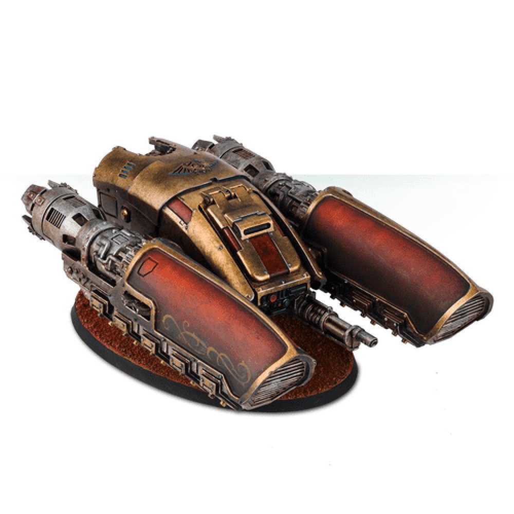 Warhammer 40K Forgeworld Legio Custodes Pallas Grav-Attack - Designed as a high manoeuvrability hunter-killer, the Pallas Grav-attack is a rapid strike vehicle utilising advanced repulsor-lift technology. Filling a similar battlefield role to the various patterns of Land Speeder and Attack Speeder of the Legiones Astartes, the Pallas has superior agility, improved armour, inbuilt shielding technology, and more powerful weaponry in the form of its twin-linked Arachnus blaze cannon – an expertly engineered weapon that can successfully eliminate both infantry and armoured targets. The Legio Custodes Pallas Grav-attack is a finely detailed model, featuring intricate engineering details and iconography of the Legio Custodes. It is a fast skimmer with the ability to Deep Strike or Outflank, allowing you to surprise and hunt down your enemy. As a Fast Attack choice in Legio Custodes armies, it can be taken in squadrons of up to three vehicles. Rules for using the Legio Custodes Pallas Grav-attack in Legio Custodes armies in Horus Heresy games can be found in the forthcoming book The Horus Heresy Book Seven: Inferno. The Legio Custodes Pallas Grav-attack is a complete, multi-part resin kit. A 105mm oval base and a resin flying base are included.