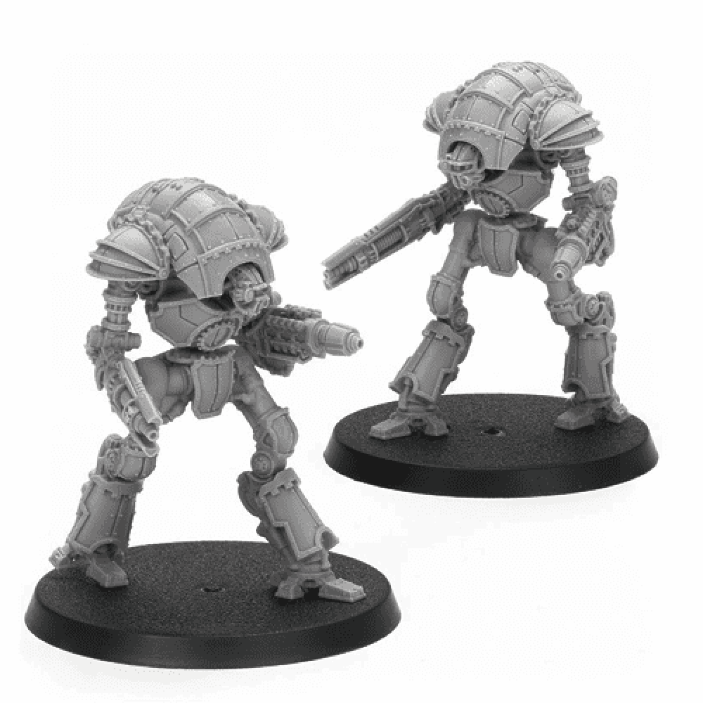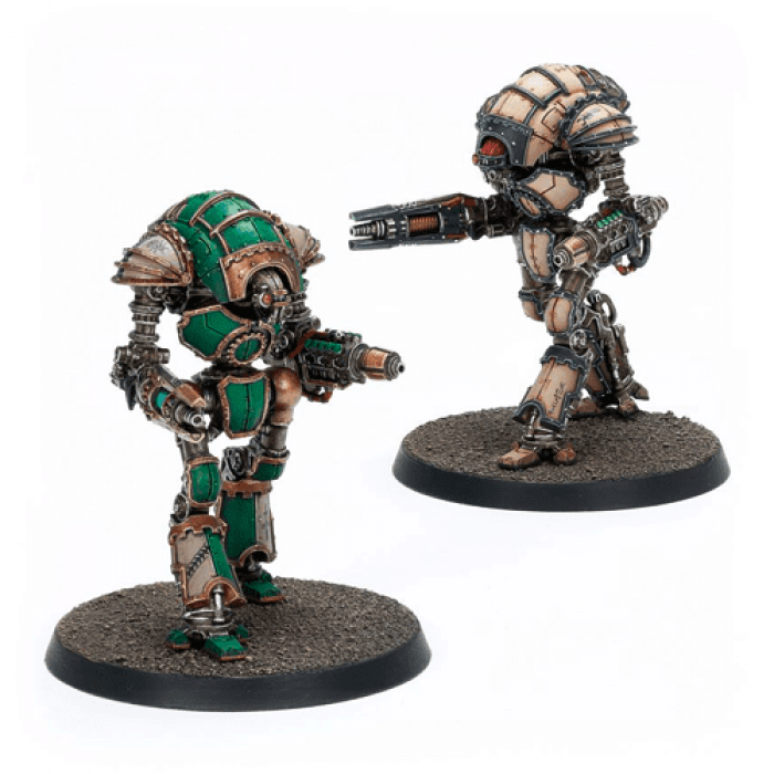 Adeptus Titanicus: Mechanicum Cerastus Knights Atrapos - One of the most revered classes of Knights, the Knight-Atrapos is a unique variant type of the Cerastus pattern bearing rare and potent weaponry of annihilation. Originally created solely to destroy heretek engines and xenos war machines whose very existence was considered a blasphemy to the Omnissiah, the Knight-Atrapos would earn a dark reputation during the Horus Heresy for the threat they posed to Titans, both Loyalist and Traitor. The Cerastus Knight-Atrapos specialises in devastating enemy Titans. Swift and agile, they can quickly close on the larger war engines before their prey can draw a bead on them. Macro-extermination Protocols make them more effective when targeting the largest of Titans, and both their graviton singularity cannons and Atrapos lascutters can break through even the heavy armour of a god-machine. A combination of a strong hull and ionic flare shield makes the Cerastus Knight Atrapos extremely durable. Coupled with their offensive capability and speed, this makes them a great choice for a Household commander who wants to close quickly with the enemy and cause massive damage. This resin kit includes 20 components which will build two Cerastus Knights-Atrapos armed with Atrapos lascutters and graviton singularity cannons.