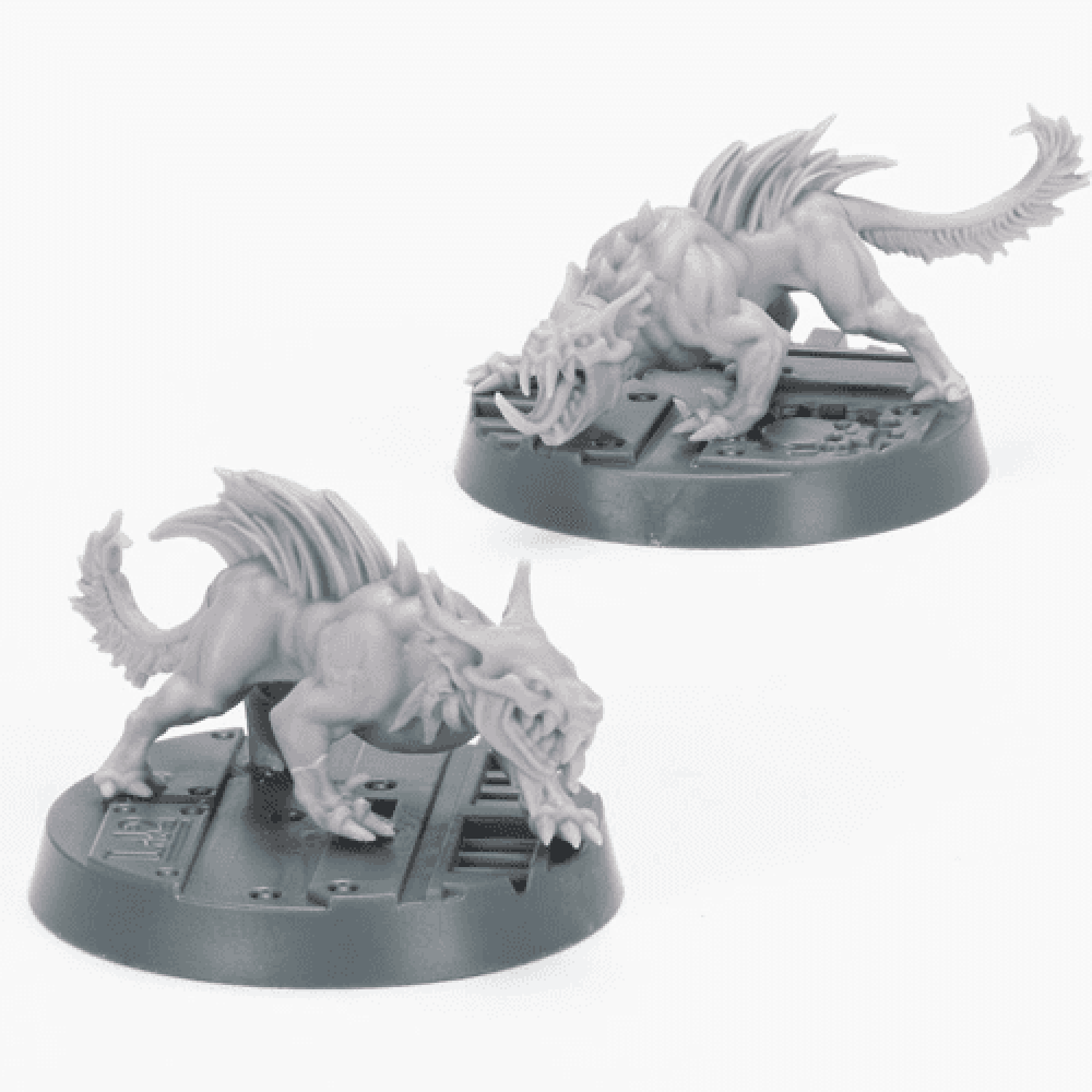 Warhammer 40K Necromunda Escher Phyrr Cats - Escher gangers are attracted to the big cats of Phyrr in particular for their exotic looks and killer instincts. Such beasts are rare in the extreme, and smuggling them planetside to Hive Primus is no mean feat, so they are an incredibly rare sight as pets even amongst the hierarchy of House Escher. Yet seen they are, and when the opportunity to acquire such a beast, or even better, a mating pair, arises, Escher gang queens will go to any lengths to secure them. Add some Exotic Beasts to your Escher gang with two Phyrr Cats – these mysterious creatures are fast, ferocious and loyal to their owner. They offer both new tactical options for your games of Necromunda, and an interesting painting and modelling opportunity too. This highly detailed resin kit comes in 10 pieces and makes two Phyrr Cats. It comes supplied with two 32mm Necromunda bases. Rules for using Phyrr Cats in your games of Necromunda can be found in The House of Blades.