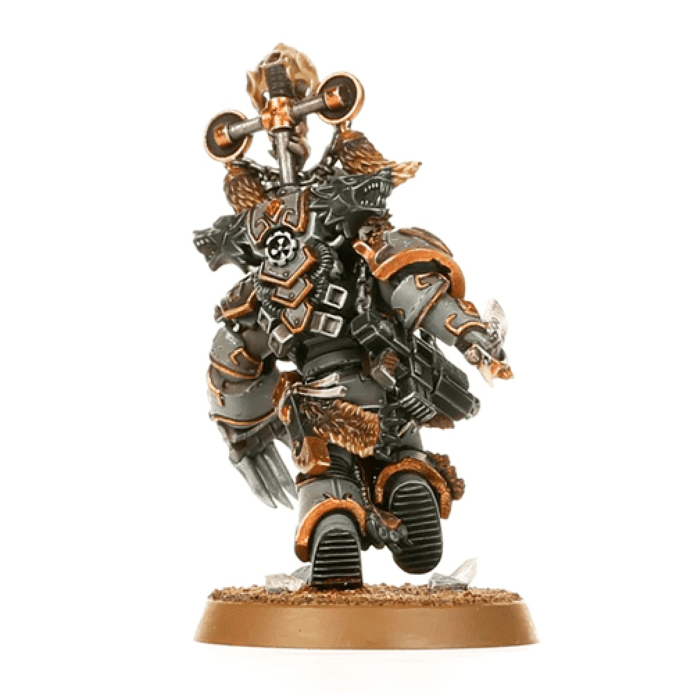 Geigor Fell-hand - Prideful and impetuous, Geigor Fell-Hand is a Thegn of the Space Wolves with a long record of valorous deeds. Yet despite his skill and fury as a warrior, Geigor's record as a commander is marred by a number of battlefield reversals – most notably the loss of his entire war pack while fighting alongside the Thousand Sons, after his allies retreated in the face of an Ork onslaught. Geigor harboured a bitter grudge against the XV Legion for this perceived betrayal – and leapt at the chance to punish them in the Censure of Prospero. This set comprises 12 components, and is supplied with a 32mm Round Bas