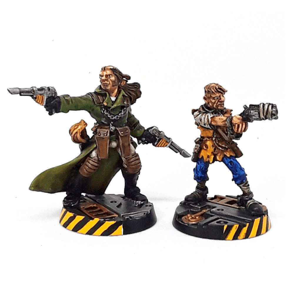 Kal Jerico & Scabbs - This consists of two resin miniatures, each comprising three components, to assemble Kal Jerico and Scabbs. It comes with two 25mm Round bases.