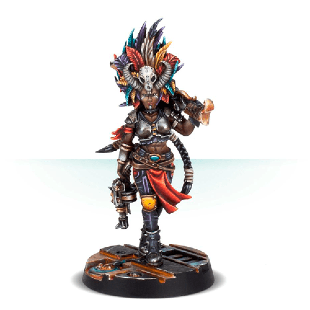 Kria the Huntress, House Escher Bounty Hunter - Kria Kytoro died with a sneer on her lips and her blade buried in her rival’s throat. Single-minded in her pursuit of her enemies, Kria earned the moniker of ‘Huntress’ because none prey-marked by her crew, the Bittersweet Blades, ever escaped for long. When Kria tangled with Gorgon, boss of the Irontree Lords, she met her match in ferocity and cunning, the Goliath leader emptying his shotgun into Kria’s chest even as her knife opened up his throat. Kria’s story might have ended there, had the alchymyst fleshteks of House Escher not already had their eye on her. Hauling her body from the Sump, the fleshteks began the process to turn Kria into a death-maiden, a resurrected warrior of House Escher. Kria proved an excellent subject, and within the cycle, she was hauling herself from an amniotic tank, her veins pulsing with chems. Kria the Huntress comes as 7 resin components, and includes a 25mm Necromunda base.