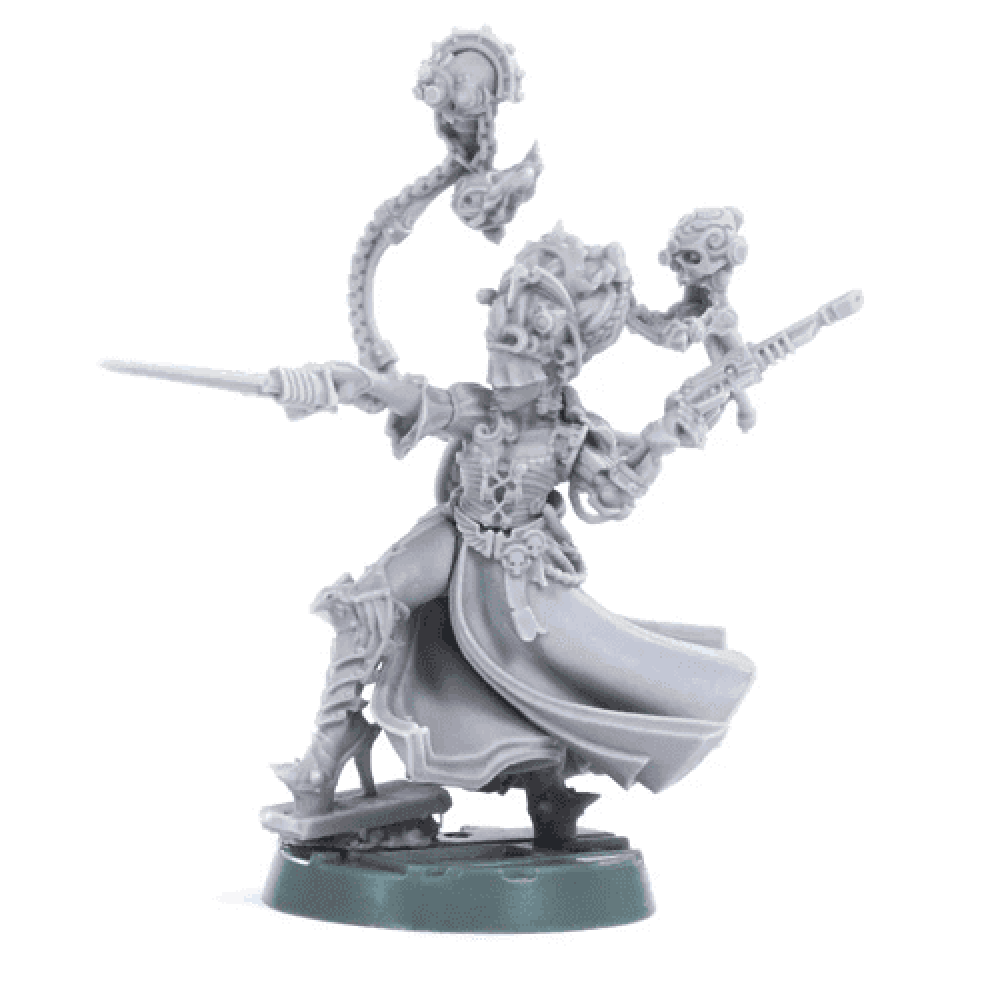 Lady Credo, Rebel Lord - Rebel Lords are aristocrats from the Spire who, for whatever reason, have left the opulence of their former dwellings behind to seek out new lives in the underhive. Lady Credo is one such Rebel Lord. Equipped with the finest wargear and bionics money can buy – as well as her pair of artificer servo skulls, Sinestus and Dexterus – Lady Credo presents a formidable adversary to anyone foolish enough to try to claim the enormous bounty on her head.