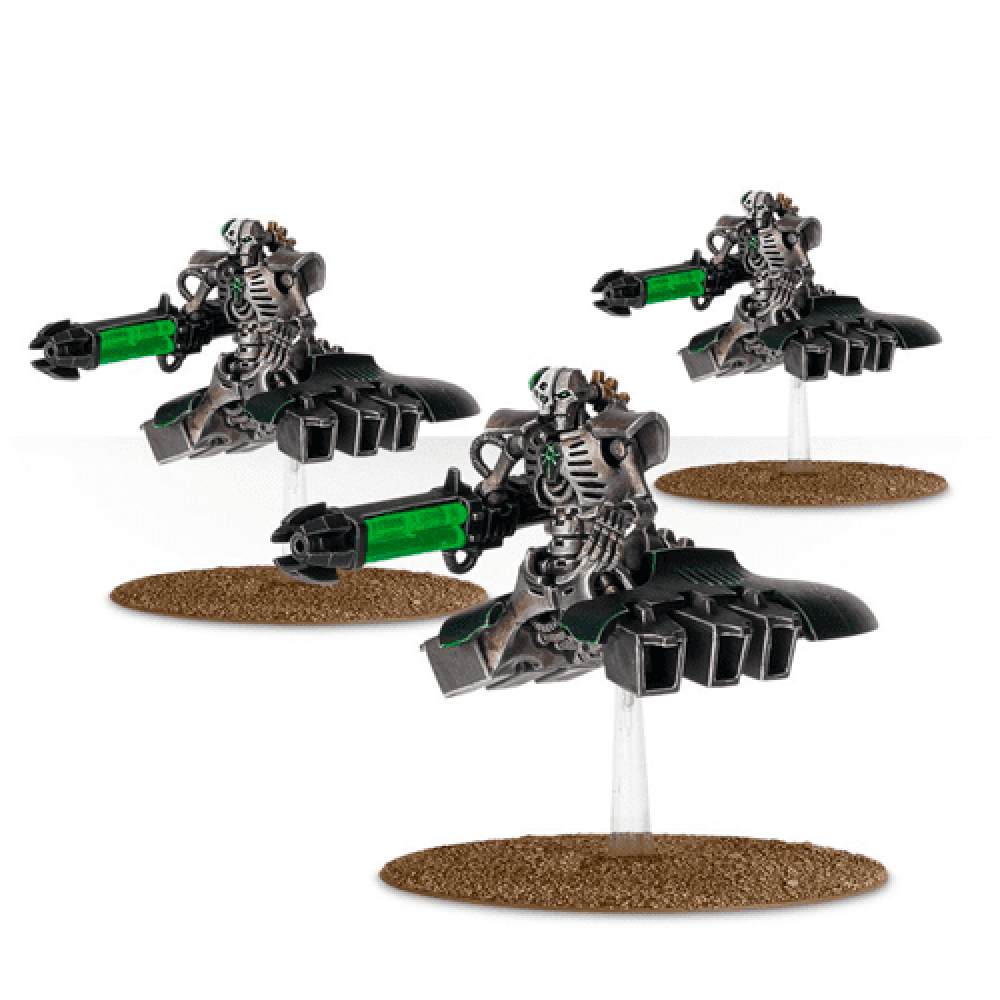 Warhammer 40K Necron Destroyer Squadron - Destroyers are the deranged agents of annihilation whose sole reason for existence is centred around an unshakeable yearning to quench the flames of life. On the battlefield, they will shatter enemy formations with heavy fire, before swooping down upon the survivors to ensure that none remain alive.