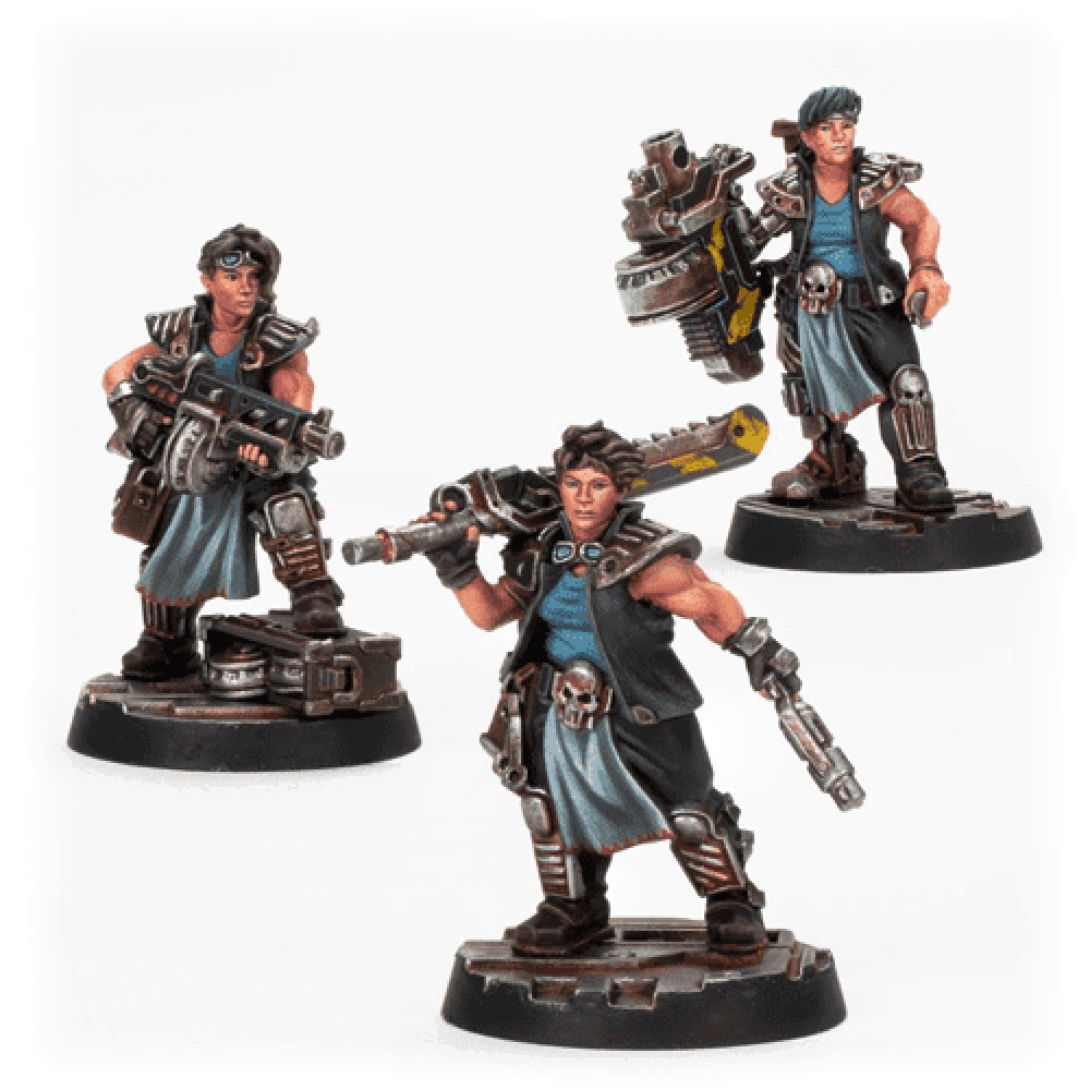 Orlock Champion and Gangers - Orlock Road Captains are, without exception, hard men and women willing to thumb their nose at authority and forge their own path. However, Orlock gangers respect independence as much as strength, and a successful Road Captain needs to be the embodiment of both of these traits.