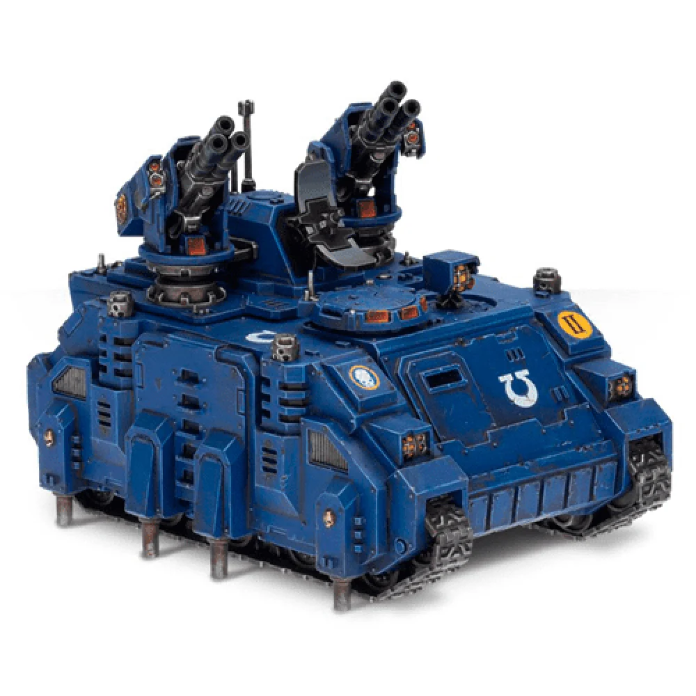 Stalker / Hunter - As the main surface-to-air tank, the Hunter scours the the skies of enemy bombers and fighter craft with its skyspear missile launcher. The primary weapon of the Space Marine Stalker is the skyspear missile launcher. There are also options to include re-inforced armour on the sides of the tank, as well as pneumatic pins along the base. The Hunter and Stalker is built upon the Rhino hull which is included in this box. This includes a back ramp which can be left unglued so that it opens and closes; interior detail including a control panel with spare boltgun; and 2 side hatches that can be glued open or closed. This resin kit contains 125 components with which to make either 1 Hunter or 1 Stalker. Also included is 1 Space Marine vehicle transfer sheet with which to add Chapter iconography and vehicle markings.
