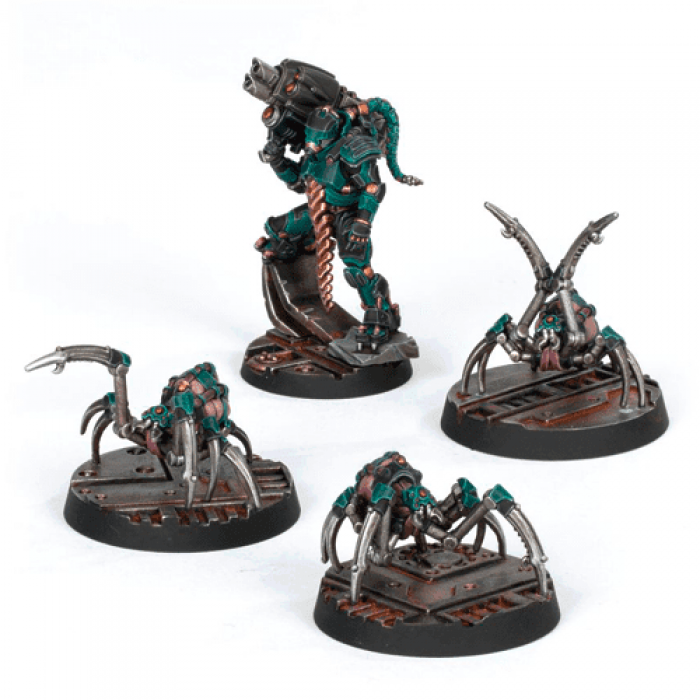 Van Saar Champion in Carapace Armour with Cyberachnids - Augmeks are well versed in countless forms of technological warfare that the Van Saar practise, and the advanced wargear forms that they employ. Often they will act as the gang’s ‘heavies’, lugging massive weapons into battle, giving their Prime access to unrivalled firepower. Augmeks also stand ready to take up the leadership role should their Prime fall, allowing the Van Saar gang to transition swiftly from one commander to another without any loss of combat effectiveness.