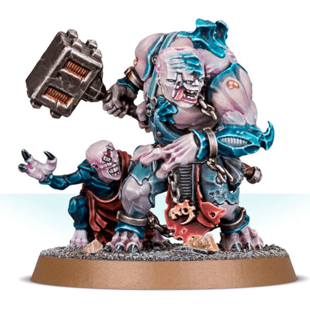 Warhammer 40K Genestealer Cults Abominant - A champion amongst the mutant aberrants of the cult, the Abominant is a misshapen wrecking ball of muscle and chitin that wields a heavy bludgeoning instrument as if it weighs no more than a switch of willow. Only when the roaring, demented brute crushes all before it in a spasmodic frenzy, crying out in a mixture of anger, pain and self-loathing, does the true horror of its existence become clear. It is guided by a Mindwyrm Familiar, a diminutive bio-psychic construct that is given life in the decaying slurry found in a Patriarch's lair. The Abominant is a devastating close combat specialist, able to deliver huge amounts of damage with his power sledgehammer and rending claw. It gives Genestealer Cults players a melee-focussed Elites choice whose Mindwyrm Familiar helps to protect it and other nearby friendly units from psychic attacks.