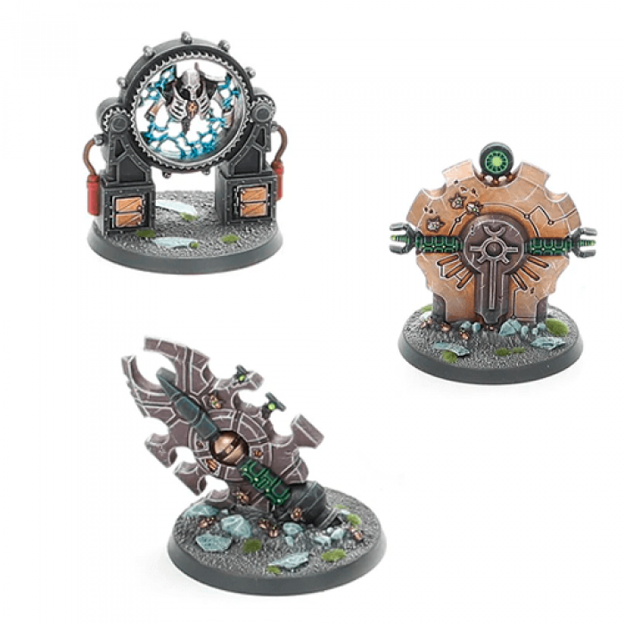 Battlezone Objective Set (x3) - A battlefield isn't complete without some objectives to fight over. These three objectives are Imperial- and Necron-themed but are ideal for any army to use as their goals in battles. Place them across the board and let the carnage commence. х3 - Fallen piece of Necron architecture, Scientific relay station, Destroyed Necron Warrior being held in place in a suspension field resin.