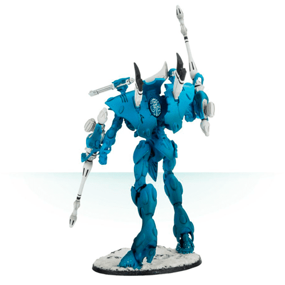 Warhammer 40K Skathach Wraithknight with Inferno Lances - A much rarer form of wraith construct than the Wraithknight itself, Skathach Wraithknights were designed to walk the endless paths of the Eldar’s ethereal realm and to purge them of any who would dare trespass. Equipped with complex webway shunt generators and rare, specialised weapons, Skathach Wraithknights are few in number, but devastating in battle. A refinement of the fusion weaponry of the Fire Dragons, the inferno lance is capable of burning through the armour of even the mightiest enemy war machine in a single, sustained burst of superheated particles and high-band radiation. To make the best use of the inferno lance, they are usually equipped as a pair. The Skathach Wraithknight with Inferno Lances is a complete, multi-part resin and plastic kit that builds one model which stands almost 9” tall. The kit includes a pair of inferno lances.