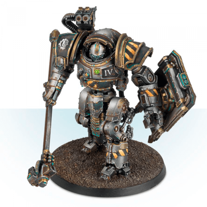 Warhammer 40K Forgeworld Iron Circle Domitar-Ferrum Class Battle-Automata - Towering over even the Space Marines of the Legiones Astartes; ‘Iron Circle’ Domitar-Ferrum Class Battle-automata are the unsleeping, unyielding instruments of Perturabo’s will. Designed by the Lord of the Iron Warriors himself, and based on the Domitar class Battle-automata, the Iron Circle were created as his personal bodyguards but soon saw service throughout the Legion. The Domitar-Ferum is well armed with an Olympia pattern bolt cannon – a rapidly firing, long ranged variant of the mauler bolt cannon; a Graviton maul – a crushing close combat weapon, similar to that of the Mechnicum’s Graviton Hammer but who’s technology has been refined for increased destruction; and a Karceri battle shield – a reactive-armoured shield whose augmented power fields reinforce those of others nearby. Domitar-Ferum Battle-automata can be fielded in maniples of up to six. A single Battle-automata is deadly and well protected, a full maniple is lethal and near unstoppable. Iron Circle’ Domitar-Ferrum Class Battle-automata Maniple can be taken as part of an Iron Warriors Legion army in Horus Heresy games. The ‘Iron Circle’ Domitar-Ferrum Class Battle-automata is a complete multi-part resin kit that builds one model. A 60mm round base is included.