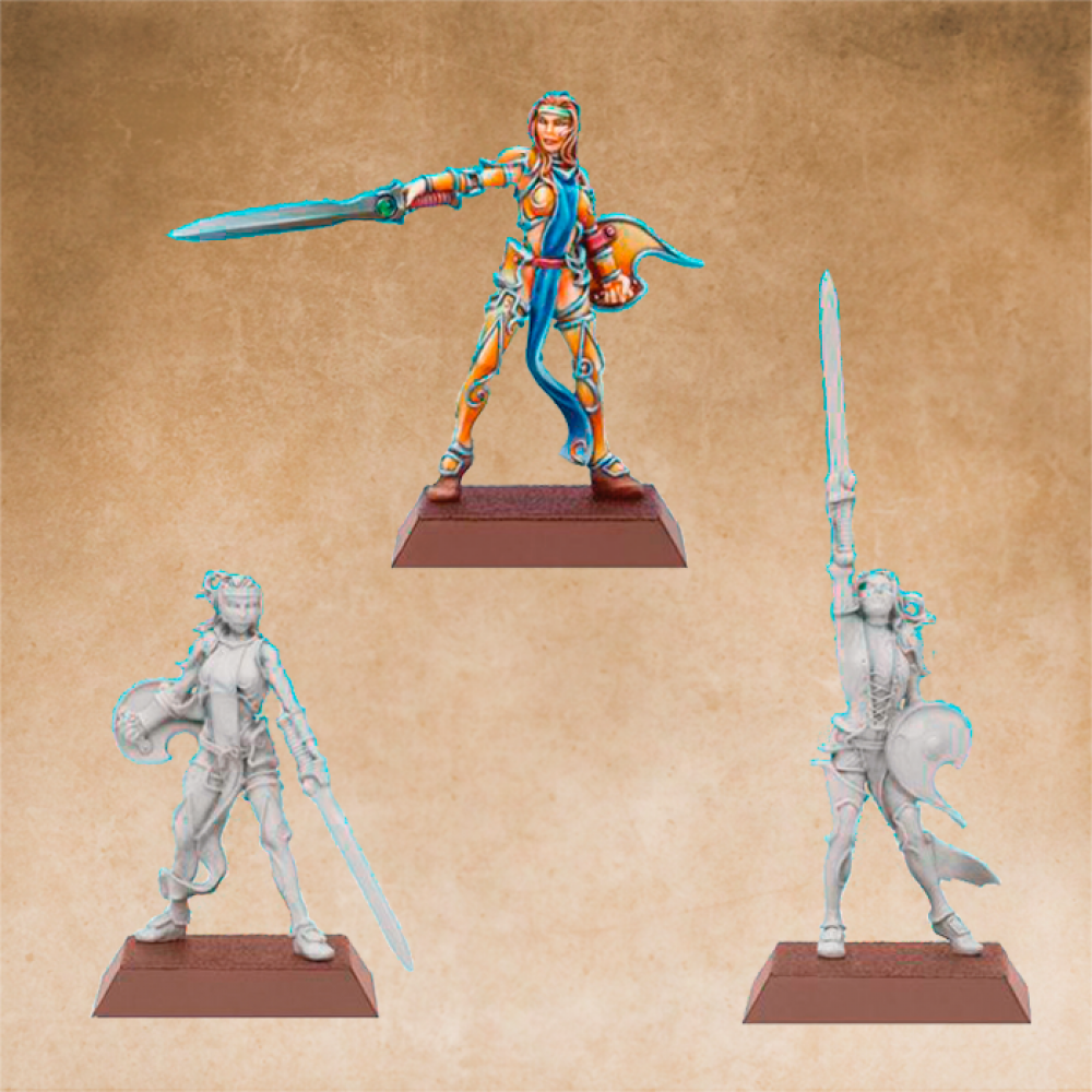 Valkyiries of Alahan 2 Material: White Metal. This pack in contains 3 metal miniatures: Confrontation (Rackham) Valkyries of Alahan 2.