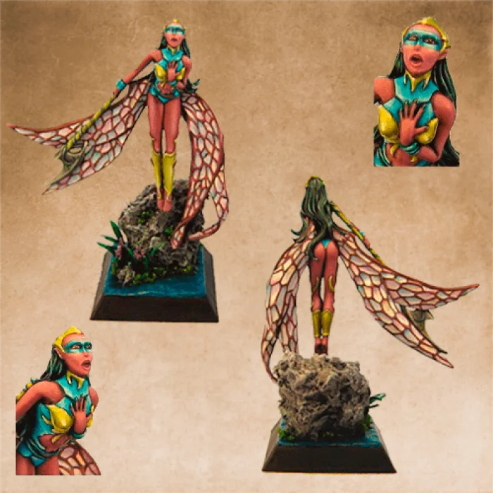 Material: White Metal. This pack in contains 2 metal miniatures: Confrontation (Rackham) Daikinee Sylph.