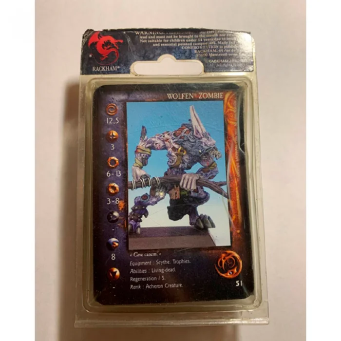 Wolfen Zombie 1 - Material: White Metal. This pack in contains 1 metal miniatures: Confrontation (Rackham) Wolfen Zombie 1.